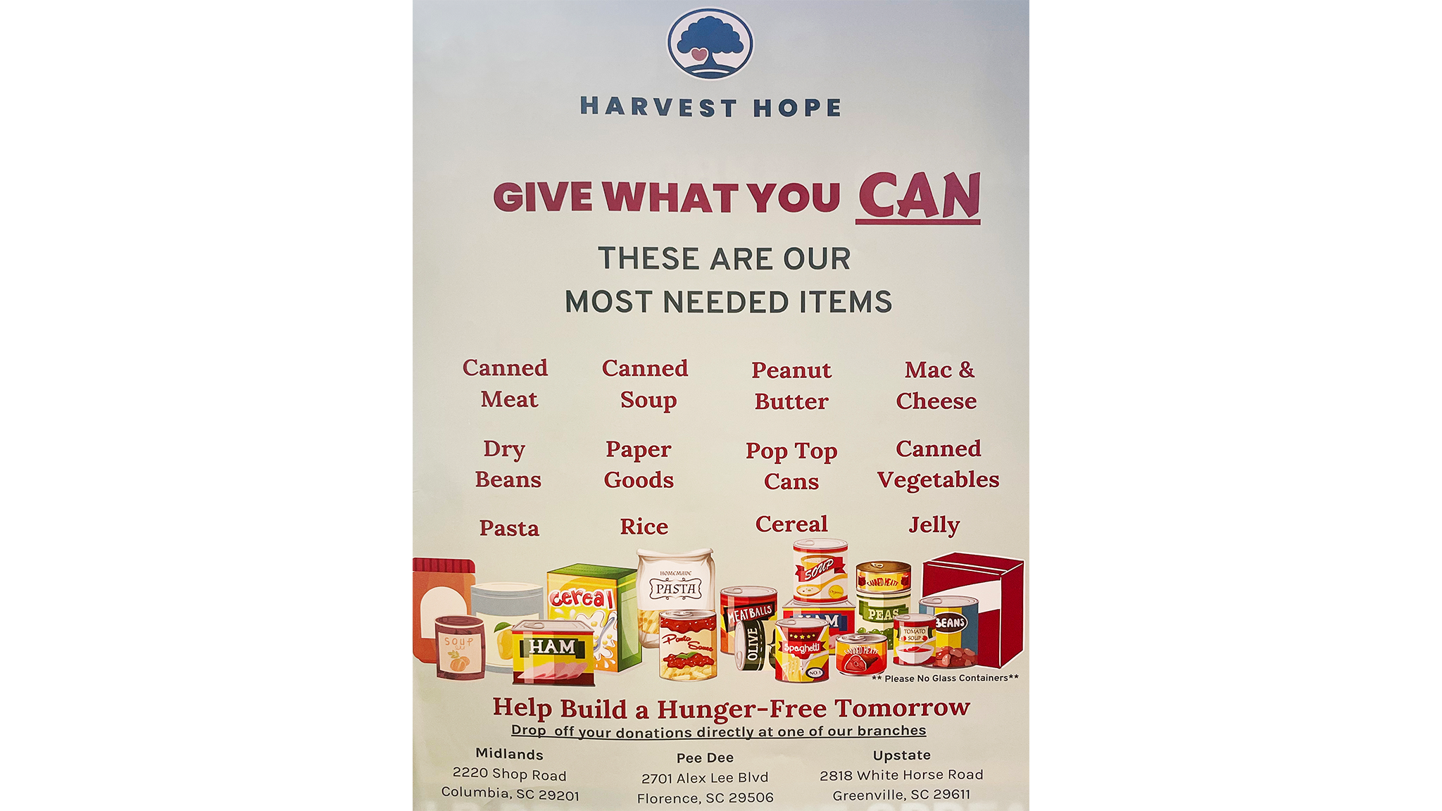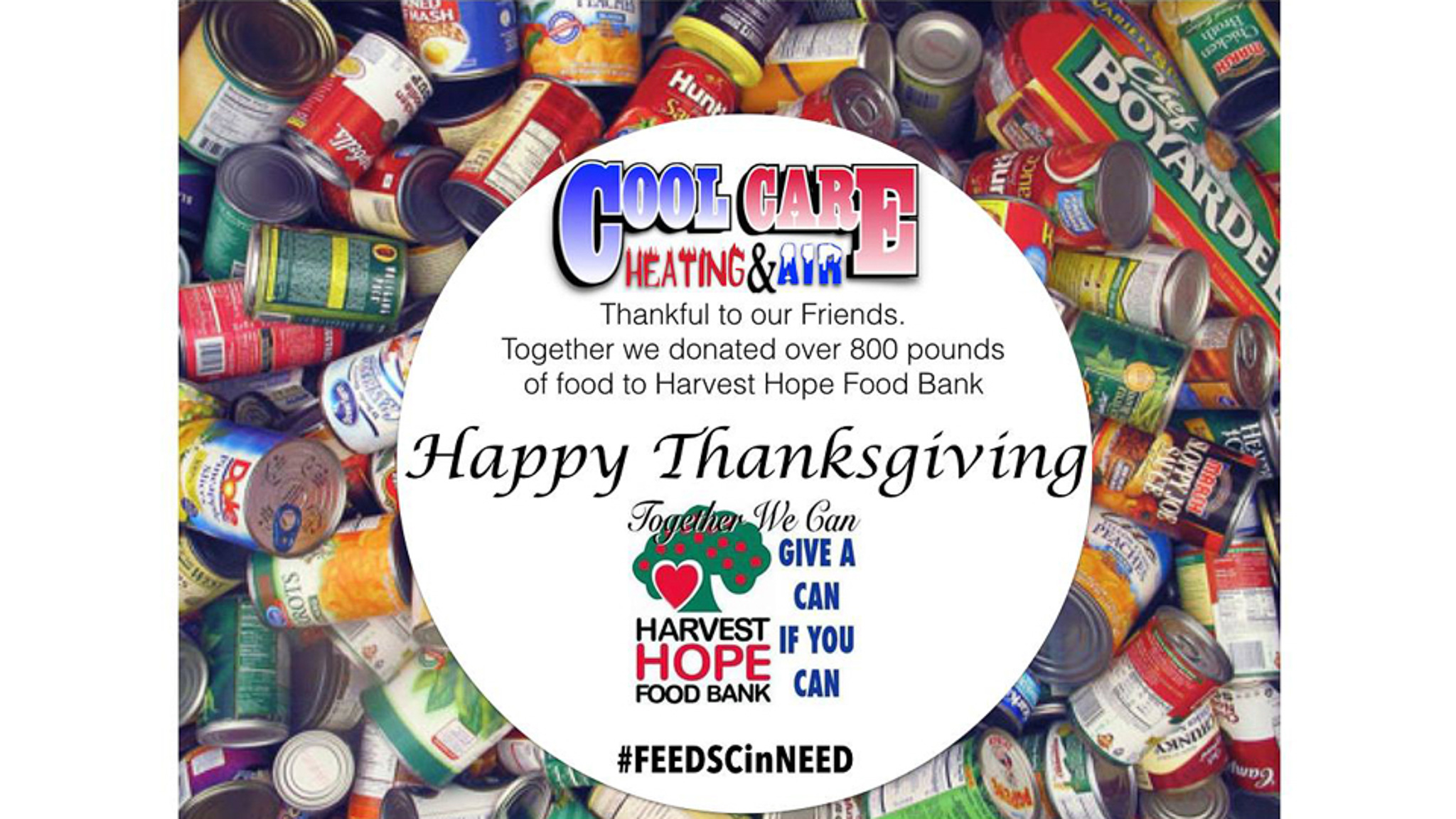 Cool Care Heating, Air, Plumbing & Refrigeration’s, Teresa Wardlaw, started this food drive for Harvest Hope Food Bank back in 2010 to help feed the Midlands.